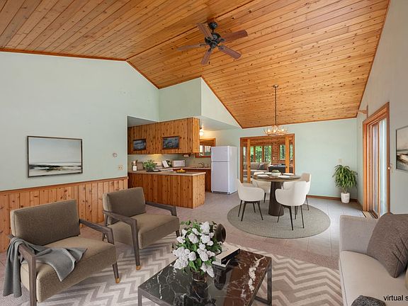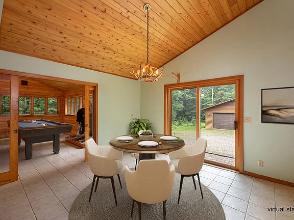 Your next adventure awaits you right from your front door at this property located right in the heart of "up north" recreation and wilderness. This serene Northwoods escape features two bedrooms, one bathroom, a hot tub entertainment room, and open concept living/dining/kitchen, all with in floor zoned heating to keep the chill out of the air all year round. If that's not enough, the wood burning fireplace will make sure to keep you toasty. The cedar sided home sits on over 5 acres with both woods and open space so privacy and wildlife are abundant. Be sure to view the activity from the best spot around, the screened in tree house! Property is close to ATV/UTV and snowmobile trails; located just down the road. The oversized FOUR CAR garage has plenty of room for all of your toys. The 5 acres is like a private nature preserve w/a mix of hardwoods including oak, maple, and evergreens. Add to this an incredibly efficient heating system to keep costs down ... so you have MORE cash to play