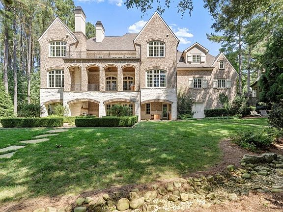 Discover an unparalleled experience in The River Club, where luxurious living meets a refined community, creating an experience unmatched anywhere else. Embrace a lifestyle of sophistication and leisure, where every day feels like a getaway in an exceptional neighborhood. This magnificent estate offers designer elegance with breathtaking views of the 13th hole of the golf course and lake, ensuring total privacy with the serene Chattahoochee River just beyond. The backyard is beautifully enhanced by an elegant English Garden-style landscape, creating a tranquil outdoor retreat. Upon entering, you are greeted by a welcoming foyer that flows seamlessly into the stylishly appointed martini room, which exudes a moody and sophisticated ambiance while also offering the versatility to serve as a formal dining room. The attention to detail is immediately apparent, with custom metal handrails adorning the staircase leading to the second floor. The expansive fireside great room, adorned with rustic wood beams, opens to a meticulously designed kitchen and breakfast room, perfect for both entertaining and everyday living. The kitchen extends to include a charming coffee bar area, complemented by a gorgeous walk-in butler's pantry, enhancing functionality and style. Double french doors lead to an outdoor retreat featuring a cozy fireplace, creating a seamless indoor-outdoor flow that enhances the overall ambiance. The luxurious primary suite is conveniently located on the main level and features distinctive herringbone-pattern hardwood floors that highlight the elegance of the space. The en-suite bath includes a separate soaking tub, an oversized zero-entry shower, dual vanities, a ladies' makeup vanity, and spacious his and her closets. A light-filled sitting room completes this exceptional suite. Ascending to the second floor, you will find three well-appointed secondary bedrooms. Two of these bedrooms are mirror images of each other, each boasting spa-like baths, sitting areas, and expansive closet space. Both suites enjoy access to private rooftop terraces with picturesque views of the lake and golf course. Additionally, convenient elevator service provides access to all three floors. The lower level is designed for entertaining and includes a custom bar, media room, state-of-the-art home theater, home gym, a massage room, and an oversized en suite guest bathroom. This home features an array of unique finishes that are truly one-of-a-kind, including reclaimed beams, exquisite ceiling treatments, distinctive door hardware, and custom lighting fixtures. Welcome home to The River Club where residents enjoy a wealth of amenities, including a championship golf course, a state-of-the-art fitness center, and a stunning clubhouse with elegant dining and event spaces. The resort-style swimming pool features Olympic lanes, a thrilling waterslide, and comfortable cabanas, while tennis and pickleball courts offer additional recreational opportunities. With picturesque walking trails, serene lakes, and beautifully landscaped parks, residents can embrace an active lifestyle and a strong sense of community.
