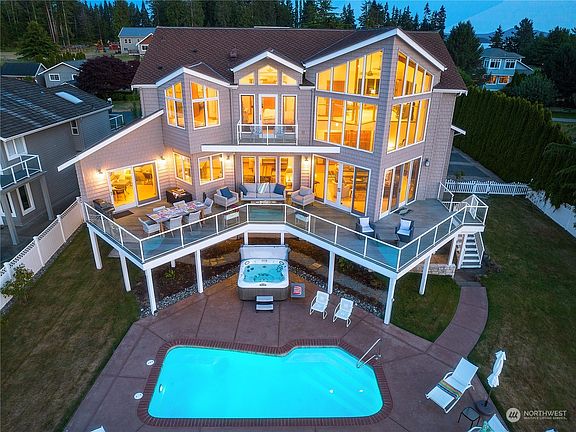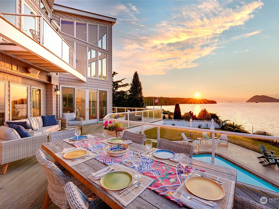 Classic Oceanfront home with impeccable craftsmanship. Breathtaking panoramic views of Samish Bay. Beautiful living room with lofty 30' ceiling & walls of windows. Chef's kitchen, generous counter space & walk-in pantry. French doors to the deck, enjoy sunrises & sunsets. LLevel guest suite has a full kitchen, living room, & ocean views. Relax by the pool, soak in the hot tub or catch a movie in the impressive media room. Just steps to the beach for crab, oysters, fishing & boating. Enjoy private 95' of waterfront with large deck & lift. Stroll to pickleball, tennis & basketball. Bike to Edison art galleries, shopping & lively restaurants. Samish Island is a charming drive-on island offering a quiet, casual lifestyle. See Feature List!