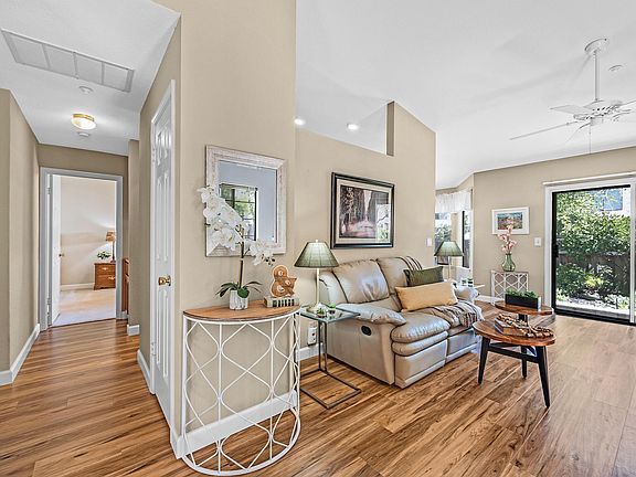 Open House Cancelled for Saturday 4/27 Beautiful Brookmeadow park location. Large open park space, tennis courts, club house, community pool & spa, playground and walking paths. This single story 3 bedroom 2 bath home features upgraded LVP flooring, cathedral ceilings in living room, large kitchen space with Quartz countertops. Large primary bedroom with sliding door to private backyard space and attached bath with extra large vanity space and walk in closet. 3rd bedroom currently being used as office space. Inside laundry room and 2 car attached garage. Beautifully manicured backyard space with paverstones and lush planter beds with private back gate to open green space and trail make this the perfect retreat to enjoy space with friends