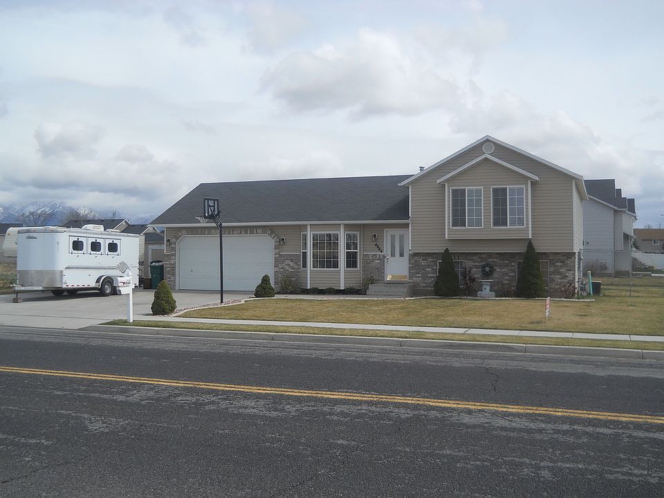 This super clean Tri-level home in the newer part of west Roy offers great location. Within walking distance of schools, church, stores. Interior has new 2-tone paint, new blinds, has glossy slate kitchen/dining room floors leading to entryway. Custom finised basement offers a cabin feel with knotty pine thoughout, knotty pine laminate floors, and knotty pine doors. Extra 1/2 bath framed ready to finish. Includes newer 6 man hot tub with retractable cover lift, extra large dog run for multiple dogs, tons of storage in attic, crawl space and matching 10x12 shed. This home looks new still, smoke-free carpets, and very pleasant living. Quiet neighborhood, with no neighbors to north, west, or south, home faces west. Low maintenence landscape. 3% COMMISSION PAID TO BUYERS AGENT IF OFFER IS ACCEPTED! Neighborhood Description Newer homes, very quiet, good neighbors, all home keep lawns and landscaping nice, newer part of west Roy.