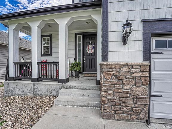 As you walk into this spacious home you will be greeted with 9 ft ceilings and 8 foot interior doors on the main floor. As you make your way to the heart of the home you will love the open concept great room, perfect for entertaining. You'll find a beautiful gas lit fireplace in the family room and luxury vinyl plank flooring that carries you to to the large dining area and grand kitchen. The kitchen is fully equipped with stainless steel appliances, 42 inch upper cabinets, granite countertops and custom pendant lighting. Love the outdoor life Colorado offers? Stroll onto the expansive covered deck off the sliding glass doors with eastern shade overlooking this huge, flat backyard that opens to green space.