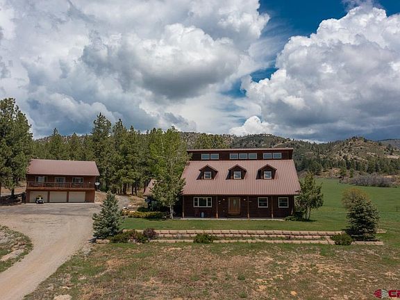Bordering over 18,000 acres of National Forest, while offering pristine meadows and pasture, two homes, tall majestic pines, seasonal water, southern views, this mountain property is quite possibly the best on the market in all of Southwest Colorado. Bordering National Forest, you can hike, hunt, explore on horseback for miles. Tucked back in the trees and away from the road, this mountain home exudes privacy, yet provides a convenient location close to Bayfield, Durango, and Pagosa Springs. No HOA nor covenants allow for endless opportunities, full time living, ranchette, hunting lodge, or just peaceful living in the mountains. The ranch is located at 7250’ elevation with good southern exposure and excellent year-round access with vegetation consisting of towering ponderosa pines, mature gamble oak, and native grass meadows and pasture. Spring run off fills the pond, allowing the pasture to be irrigated during the summer months. The original hunting “lodge” was built in 1997, offering a three-car garage and workshop, two bedrooms, a covered porch looking south, and the perfect place for guests to enjoy their own space. The main home was constructed in 1999, with over 2,280 square feet, a huge welcoming country kitchen, inviting living room with a fireplace centered for warmth and a covered porch looking North perfect for afternoon supper. The entertaining area is picture-perfect offering natural light, lots of windows bringing the outdoors in, and tall ceilings opening to the loft area above. Also on the main level is a primary bedroom suite. The upstairs of the home features another bedroom, loads of storage space, bathroom, a loft area great for a bunkroom or media space, and another area that could serve as a great home office or workout room. Two car garage, covered porches, and views from every window in the main home. Both homes have new roofs in 2016-2017, new Anderson windows in 2021 (main home), property has been fire mitigated, sprinkler system in front and back, recycled asphalt to freshen up the drive. Offering the ideal combination of wildlife habitat, pasture for domestic animals, places to play, ski, hike, with proximity to towns, this Colorado mountain dream property is ready for new owners to enjoy. Daily bird watching, elk and deer sightings, turkey, and more. Come see this SW Colorado ranch today.