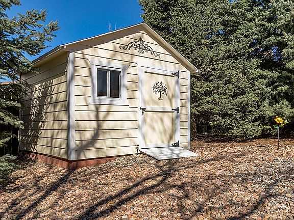 Safe and quiet cul-de-sac in desirable Mountain Shadows, within proximity to Garden of the Gods Park. Elegantly landscaped yard with large mature trees that will provide privacy as you lounge in a Hot Springs Grande, 6-person hot tub. Two wood decks plus stamped concrete patio make this beautiful home perfect for entertaining. Store lawn implements in a 10x10 shed with upper loft; color matched to main house. Abundance of natural light, throughout main floor starts with a spacious living room with Bella Hardwood floors, and vaulted ceiling. Effortlessly flows into gourmet kitchen and into dining room with a refinished wood burning fireplace. Gourmet kitchen with Maplewood cabinetry, including soft close cupboards and drawers. Refined Cambria Ella quartz countertops/island. Stylish high-end appliances to include a Samsung dual fuel/dual oven chef collection stove, Zephyr hood, Bosch in-drawer microwave, low db LG dishwasher and spacious 29 cu LG refrigerator. Master bedroom has a newly renovated ensuite bathroom, oversized walk-in shower with natural pebble floor, rain-head, four massage jets and additional handheld shower head, along with a double vanity. Two additional bedrooms and full bathroom, on upper level Finished basement with living area, and additional bedroom and half bathroom. Updated mechanical features include A/C, natural gas furnace and hot water tank, along with a new roof in 2018.