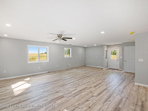 Whether you're just starting out or looking to downsize, this brand-new ranch in Stockbridge is the perfect fit. Set on a half-acre lot, the home features three bedrooms, two full baths, and an open-concept kitchen, dining, and living area that creates a bright and spacious feel. The kitchen will be finished with sleek quartz countertops, new stainless steel appliances, and attractive laminate flooring that extends through the main living space. Step out back to enjoy peaceful rural views from the deck, or take advantage of the 24x24 pole barn with concrete flooring and its own 100-amp service—ideal for storage, hobbies, or a workshop. Just minutes from town yet surrounded by country charm, this property is a wonderful place to call home.