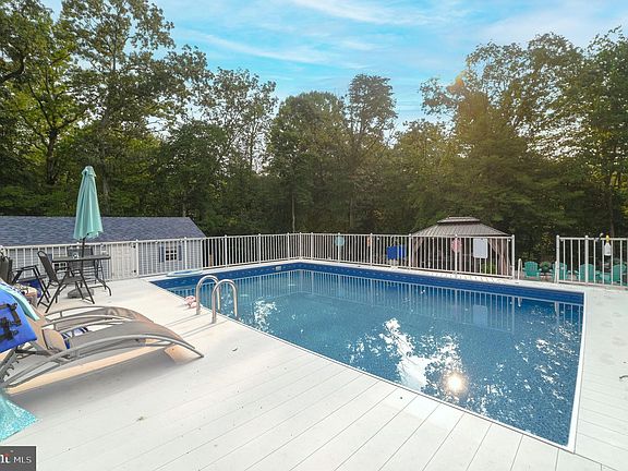 Marvelously Charming Raised Rambler with Entertainment-Ready Backyard and total SQFT of 2,908! Beautifully located on the street with one-way access in a desirable area, this 3BR/3BA residence captures the essence of leisurely living with an oversized 1.04-acre lot, a sparkling above-ground swimming pool, an expansive basement, and a fully-equipped gazebo (fan and electricity). Cheerful and comfortable, the interior captivates with a cozy three-season front porch, an openly flowing layout, high vaulted ceilings, stunning hardwood floors, and a spacious living room with a well-appointed fireplace. As the holidays approach, make cookies and memories in the kitchen, which includes stainless steel appliances, granite counters, white cabinetry, gas stove, built-in microwave, French door refrigerator, dishwasher, recessed lighting, pantry, and a dining area. The large deck is the perfect spot for grilling and chilling overlooking the unbelievable backyard. Explore further to find a firepit, patio, and an over-the-top SHED which comes with air-conditioning, heating, and ventilation! Indoor parties are also a cinch in the huge basement, with plenty of room for media and games. Experience tranquility in the primary bedroom with ample closet space and an upgraded en suite with dual sinks. Other features: 1-car garage, laundry room, no HOA, cost-saving solar panels (new owners take over lease), 5-minutes from Washington D.C. commuter bus, near shopping, restaurants, and schools, and more! Call now to schedule a tour!