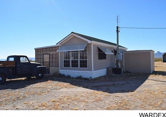 GREAT PART TIME OR SNOWBIRD PROPERTY OR PERFECT FOR STARTER HOME*WELL MAINTAINED NEWER HOME WITH HUGE 450 SF SCREENED IN COVERED PATIO*SINGLE CAR GARAGE WITH A CARPORT ON EACH SIDE*LARGE 25' x 30' STEEL BUILDING THAT JUST NEEDS THE 4TH SIDE OR IT IS BUILT TO BE ADDED ONTO*HAS A 10' x 12' WORKSHOP*ALL POWER IS UNDERGROUND TO BUILDINGS ETC*WATER IS TO EACH BUILDING AND THERE ARE 2 STORAGE TANKS WHICH HOLD ABOUT 4000 GALLONS*THERE ARE 2 275 GALLON WATER HAUL TANKS INCLUDED WITH SALE*HUGE LOT RIGHT OFF PAVED OATMAN HWY WITH EASY ACCESS*SHORT DRIVE TO KINGMAN, LAS VEGAS, LAUGHLIN AND THE RIVER*THE HOME IS SUPER CLEAN AND SOME FURNITURE STAYS*BUILT ON WORKSHOP LAUNDRY ROOM WITH WASHER & DYER AND WATER SOFTENER*HAS PROPANE HOOK UPS IF YOU WANT TO ADD TANK*THIS PLACE IS MOVE IN READY AND MUST BE CASH SALE CALL FOR MORE INFORMATION