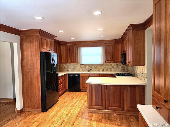 This home offers so much with four bedrooms, four bathrooms, an oversized 2 car garage, Cherry Creek School District, walking distance to the swimming pool, pond, tennis courts - also stripped for pickle ball play and the security of a gated community. If you love the look and feel of real wood this home exudes such warmth with the extensive amount of hardwood flooring, built in cabinetry, 6" baseboards, crown molding and solid oak doors in all its beauty and detail. The kitchen provides the four major appliances including a gas range, side by side refrigerator, dishwasher and microwave. The countertops are a hard surface Silestone with a backsplash of glass tile and tumbled stone. An eat in area is located in the kitchen but, when you prefer a more formal setting, a dining area is located within the living room/great room area. You can appreciate the family room with the gas log fireplace insert, built in surround sound speakers and custom cabinetry including an audio visual cabinet for your components. Three of the four bathrooms have been upgraded with custom tile work and hard surface countertops. A 10'X15' three season patio aka sun room is located on the west side of the house and is shaded by numerous large trees in the summer. A paver brick patio compliments the backyard for gatherings, barbeques, or a quiet place to catch up on some reading.