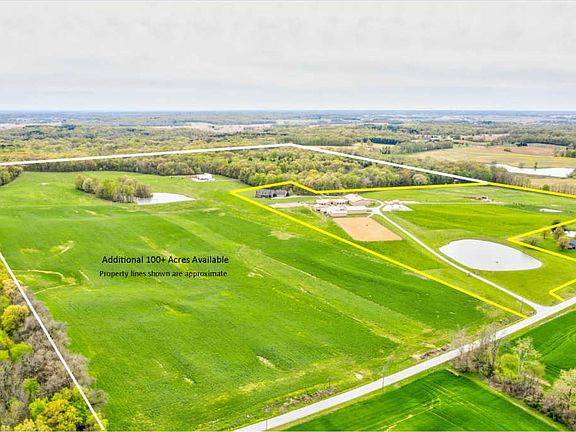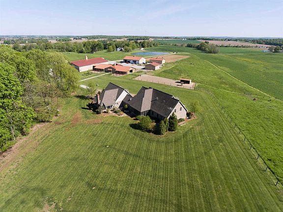 Southwestern Indiana Equestrian Estate on 50.62 Acres with Custom Home, Morton Built Indoor Riding Area, 4 Morton Buildings, and a Lake. Home Includes: Over 6000 sq. ft, 3 Car Attached Garage, Guest Suite/Mother-Law Suite, 5 Total Bedrooms, Cherry custom cabinetry in kitchen, high end appliances, Electrolux icon stainless convection stove/range, Sub zero refrigerator, Wolf stainless range, large walk-in kitchen pantry, Maugeri custom island with quartz countertops, granite countertops in kitchen, Hickory hardwood floors throughout, Large Screened-in back patio, 25k whole house Generac generator, 1000 gallon propane tank, and ICF Construction, Geothermal HVAC, and professional landscaping. Guest suite features: Separate laundry and kitchen area with wormy maple cabinetry, living room with fireplace, bedroom, and full bath. Grounds include: 40 + or - Acres, 72'x135' Indoor Riding Arena, 115'x42' Stable with 12 Horse stalls, tack-room, restroom, and heated water. 54'x74' Equipment building with concrete floors, and Five 12' doors. 30'x60' building, 12'x24' building, 3-Run in Sheds 12'x24', Water Access in every pasture, Gated Entry, and many other features!