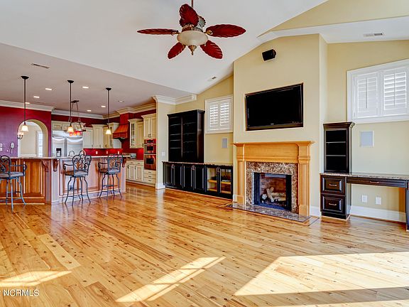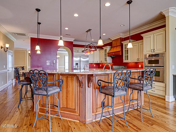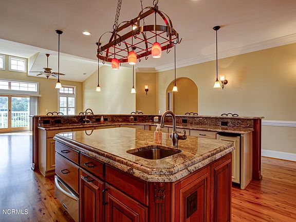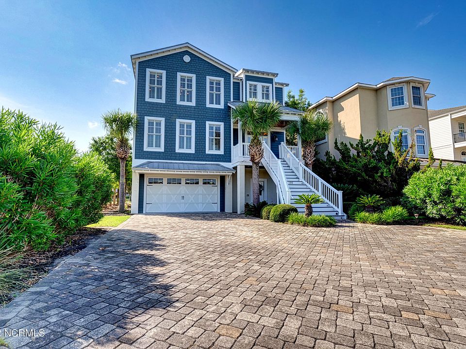 This home comes to life as you walk into a beautiful entry hall-style foyer and are greeted by Australian Cypress hardwood floors with African Black Wenge accents and an inlaid compass. A one-of-a kind luxury waterfront property located in the gated Paradise Island community with access to the Intracoastal Waterway. This 3-story, 4 bedroom reversed floor plan custom-built home is equipped with a floating dock, a 10,000 lb. boat lift, and jet ski pads. The exterior is made of Hardi-Plank and color PLUS technology siding. All porches have Trex decking, Anderson Frenchwood gliding patio doors, vinyl porch railings, Cedar T&G ceiling planks, and ceiling fans and lights. The backyard has sweeping views of the canal with an outdoor living space and a cozy gas fireplace. The top floor consists of the owner's suite, family room, gourmet kitchen, and formal dining room with a wet bar. A Romeo & Juliet balcony framed with mahogany handrails and wrought iron pickets overlooks the inlaid compass in the main foyer tying two floors together. The middle floor has 3 masters, a day kitchen, laundry room, foyer, and family room. In addition, this home is equipped with Plantation Shutters and blinds, a whole home generator, as well as a central vacuum system with built-in dustpans.