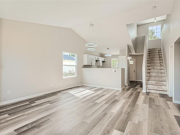 Welcome to this completely renovated townhome in the Montbello neighborhood with easy access to I-70 and I-225! As you step inside, you'll notice the inviting main living area with its high vaulted ceilings, creating a sense of spaciousness. The kitchen seamlessly flows into the cozy living room, complete with a gas fireplace.