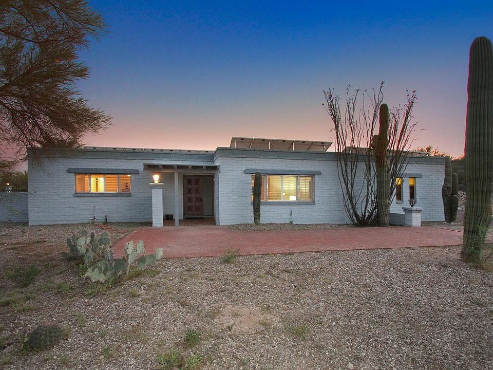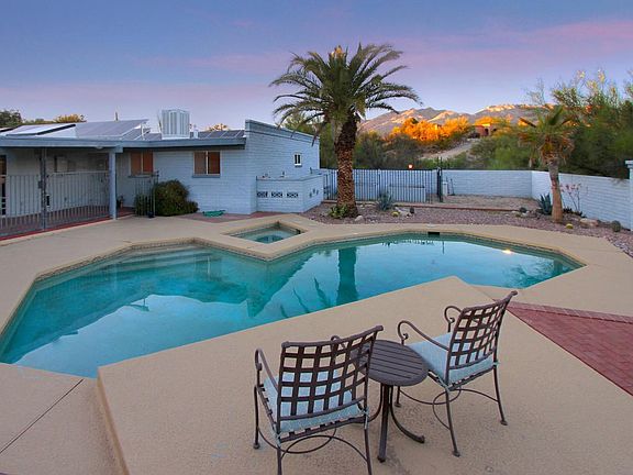 A tranquil, serene and private hideaway in Tucson's famed Catalina Foothills waits its new owners. With an acre of gorgeous mature trees and saguaros, including your own mesquite bosque, with lovely mountain and city lights views, an elegantly calm pool, room for treehouses and corrals in the "back 40", a separate casita, lots of fresh paint and a paid-for solar system that reduces electrical costs to not more than $50 per month if that, what's not to love? The home is warm and embracing, with great spaces for relaxing or gracious entertaining by your choice of two fireplaces. Enter to a handsomely lit courtyard with lots of parking space, into an entry with rich parquet flooring. A cozy living room and dining area provides space for intimate conversations.