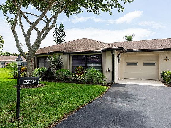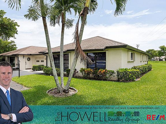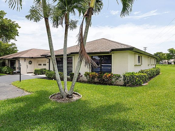 Call Listing Agent. Amazing Waterfront Villa. Super clean 2 Bedroom 2 Bathroom + oversized 1 car garage in desirable 55+ community. You will love this corner villa with tile flooring and nicely maintained open floor plan. Enjoy the water views from the dining room, patio, kitchen and 2nd bedroom. The master bedroom has a walk-in closet. Washer/Dryer inside the home. You will only share 1 common wall with your neighbor. Storm shutters and tiled throughout. 55+ community with a clubhouse and pool. Centrally located, 20 minutes from Palm Beach International Airport, close to the beach and shopping & dining. Hurry call today because this will not last.