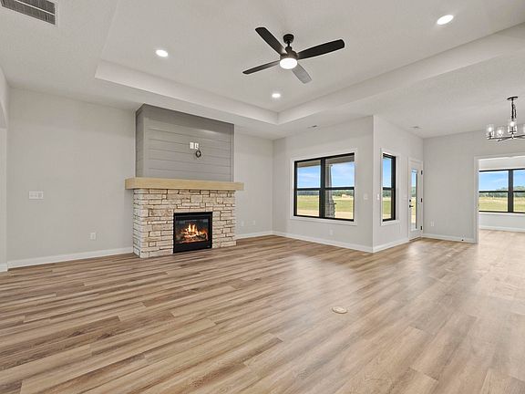 OPEN HOUSE... Saturdays, 10 am-12 noon and Sundays, 1-3 PM....Welcome to The Sangria – A Stunning New Construction, from the Cottage Series, by Kiracofe Homes.This exquisite 3-bedroom, 2-bath split-bedroom ranch spans 2,034 square feet and includes an attached 3-car garage. Located in a new subdivision within the NWA school district, this home combines style and function. The large kitchen features a central island with a breakfast bar, walk-in pantry, quartz countertops, custom soft-close cabinets, and stainless steel appliances, including a water softener. It flows seamlessly into the great room with a gas fireplace, built-ins, and floor outlet. Enjoy meals in the breakfast nook or relax in the sunroom and appreciate the backyard patio. The primary suite offers dual sinks, a roll-in shower, and a spacious walk-in closet connected to the laundry room. The exterior includes a full landscape package with seed and straw blankets, decorative rock, and front yard irrigation. With Kiracofe’s signature quality, this is a must-see!