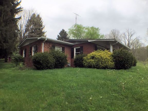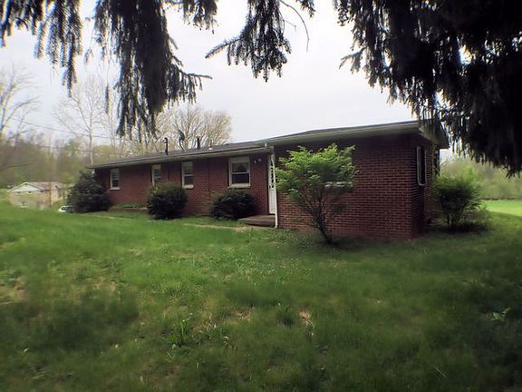 What a nice home. This brick ranch sits up on a rise with a nice view of valley in front of it. Loads of room, with a full basement, two car garage and an outbuilding. Gracing the interior are hardwood floors, kitchen and dining area.
