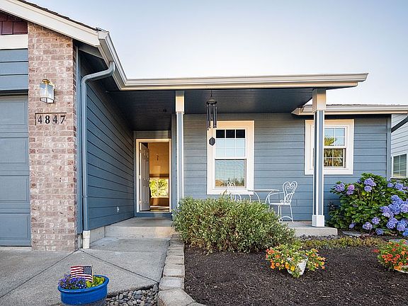 Upon entering this home, enjoy the vaulted ceilings with updated bright lighting, and look through to the backyard with a stunning wooded riverfront view. This single-level home boasts 4 bedrooms in a centralized layout surrounding a large great room—ideal for efficient natural gas heating and A/C. 2 full bathrooms are freshly updated with new paint, new countertops, new flooring, and new fixtures in clean colors. The kitchen features a corner bench seat for a dining area/breakfast nook. The showstopper is the creekfront backyard, ready to be fully fenced. Outside offers a spacious yard ready for your kids, pets, chickens, garden—whatever peaceful oasis you dream of creating. Priced to sell, this home is an excellent location for an easy commute with access to I-5, off the 1st exit south of Salem. This home is your new escape!