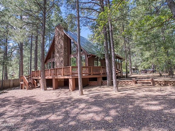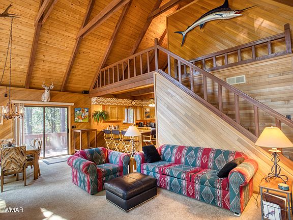 Great Mountain Chalet in Pinetop Lakes Country Club! Beautiful Tree covered lot on Black Panther Loop. Floor to ceiling trapazoid windows provide pleasent views from the living room and the Loft area. Fully Furnished! Kitchen has Oak cabinets and floors. Large Storage room is currently a nice sized work shop. Space under the stairs can be converted to a laundry. It is big enough for a stack unit. House is on stemwall so it can easily plumbed for water.