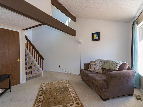 This cozy 2-story townhouse is centrally located near dining, shopping, schools, and has easy access to both Academy Blvd and Powers Blvd* As you enter this home you will notice the bright and open floor plan with 2 story ceilings* The Living Room features a wood burning fireplace and large windows that allow natural light to pour into the home* Just off of the Living Room is the Dining Room and galley Kitchen with beautiful wood laminate flooring and a walk-out to the back patio area* There is a 1/2 bath conveniently located just off of the entrance of the home* As you go upstairs, you will be greeted with a Loft (this room could be used as a 2nd Bedroom since it has a closet)* The spacious Master Bedroom has vaulted ceilings, large windows with mountain views, walk-in closet, and adjoining full Bath* There is a Laundry area on the upper level*
