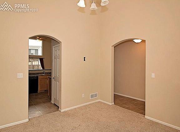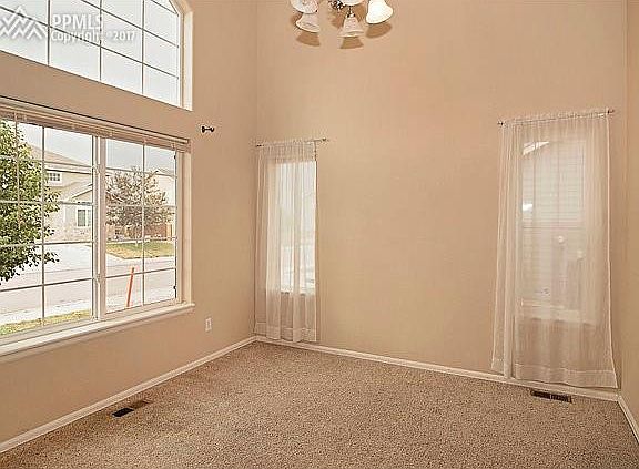 This home features an open floor plan with vaulted ceilings. Spacious kitchen with hi def counters and ample storage with separate pantry that adjoins the dining room. Large Master bedroom with 5 piece bathroom and walk-in closet. Upstairs has 2 bedrooms and a full bath. Lots of potential for growth with 1132 sq. ft unfinished basement. Concrete patio in the fenced back yard. Conveniently located off Powers in quiet neighborhood, quick drive to bases! Come see today! This one will not last long. We are priced to sell!