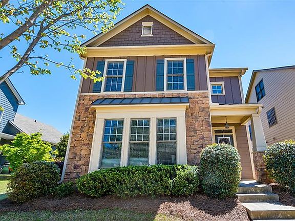 Beautiful 4 bdrm craftsman style home in popular community of Village Grove, featuring open floor plan w/ 9' ceilings and hardwood floors. Family room w/ fireplace. Dining area w/ French door access to private patio. Kitchen w/ granite countertops breakfast bar w/ view to family room. Spacious master bedroom w/ oversized closet. Awesome location! Village Grove offers a community greenspace, swim/tennis, pavilion with walking trails. Did I mention great schools? Low HOA fee includes, trash pickup, lawn care and amenities