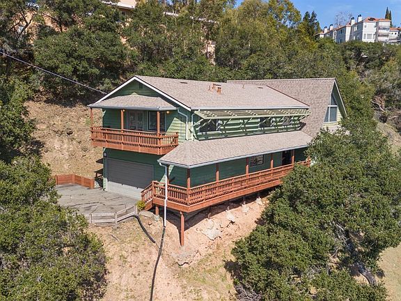 Perched atop a serene mountain, this exceptional estate spans a rare double lot of 1.32 acres, offering expansive living and breathtaking, unobstructed views. This one-of-a-kind home serves as a private retreat, blending elegance and seclusion in an unparalleled setting. With Leona Heights as your backyard, enjoy fantastic hiking trails right at your doorstep, and benefit from close proximity to I-580. Boasting three spacious bedrooms, 2.5 baths, and a versatile den, this 2,805 sq. ft. two-story residence features an open, airy floor plan perfect for both comfortable living and impressive entertaining. The soaring cathedral ceilings and large windows flood the home with natural light, framing the stunning views throughout. The upstairs primary bedroom is a true sanctuary, complete with an en suite bath, a walk-in closet, and a private deck where you can relax and take in the panoramic vistas. Just outside, discover three expansive decks, ideal for hosting gatherings or simply unwinding amidst the beauty of nature. The property also includes a long, 175-foot private driveway, adding to the sense of exclusivity. Experience the epitome of estate living in the Oakland Hills, where privacy, breathtaking views, and exceptional craftsmanship come together in perfect harmony.