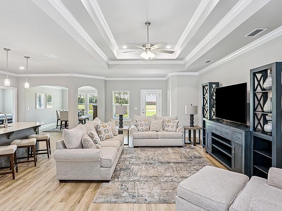 - Crown Molding, Ceiling Tray/Cofferd, Kitchen Island, Recessed Lighting, Pantry, Shelving, Bedroom, Dining Area, Great Room, Kitchen, Master Bedroom
