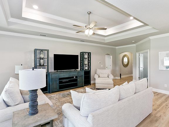 Additional upgrades include a whole-house blinds package, crown molding in the common areas, and durable luxury vinyl plank flooring. The spacious, split-bedroom layout includes a luxurious primary suite with a tray ceiling, tiled walk-in shower, garden tub, double vanities, and a generous walk-in closet. A side-entry three-car garage elevates curb appeal with a clean, upscale look while providing ample space and functionality. This home has it all!