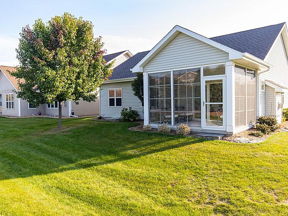 Fantastic N Appleton Condo! At the end of a private road you will find this 3 bedroom, 2.5 bath gem. Enjoy pond views, sunroom, plentiful natural lighting, super clean inside and out. Kitchen with backsplash and center island, luxury vinyl plank throughout. Updates include: basement partial finish, roof (2022), sunroom, concrete driveway and sidewalks sealed, master bath grab bars, garage floor epoxy coated, repainted garage, replaced garage door trim, garage shelving, new refrigerator, front entry doors repainted; dryer vent cleaned, furnace and CA inspected & house power washed annually, radon mitigation system, Aprilaire, water heater, back up sump, smoke and carbon monoxide detectors, Appleton Awning roller shades. Pride of ownership shows.