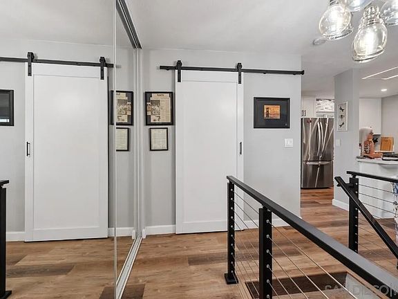 Must see - gorgeous 2 bedroom, 2 bathroom condo in the heart of La Mesa! No expense has been spared in this thoughtfully, designed remodel. The fresh, bright kitchen boasts all new cabinets, stainless steel appliances, a deep farm sink, gas stove with griddle, flush-to-ceiling vent hood and under-counter microwave, quartz counters, rock tile backsplash, and breakfast bar and opens into the stylish living room, with cozy fireplace with chevron tile and cedar mantel. A door opens to a mini balcony giving a light open feeling. Other upgrades include luxury vinyl flooring, a modern farmhouse chandelier, a stairway with a Viewrail railing system in matt black with stainless steel, barn doors on the laundry closet, and both bathrooms, and a new mini-split HVAC in each room. The primary bedroom has wall-length mirrored closets and the secondary has its own walk-in. Enjoy your mornings relaxing in the privacy of your own covered balcony, while you sip your coffee and welcome in the new day! Less than 1.5 miles to downtown La Mesa, grocery stores, fast food, and Costco. Also, easy access to I8, 125, and 94 highways. About 2 miles from SDSU. Don't miss this opportunity!