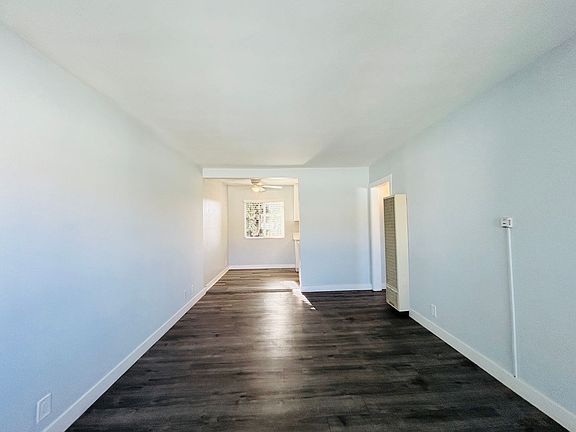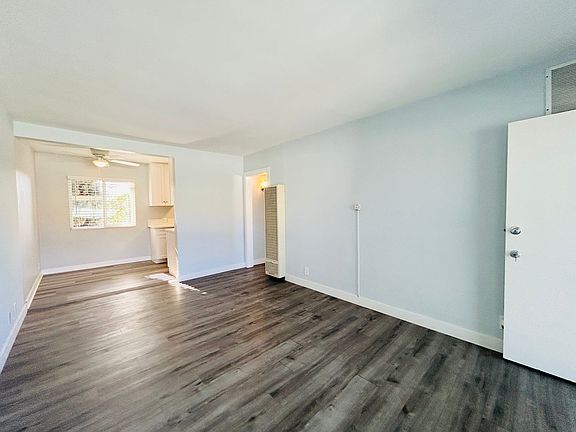 This charming 1-bedroom, 1-bathroom apartment is situated on the upper level at the rear of a 12-unit building and is a must-see! The entire unit has been freshly painted in a lovely powder blue and features beautiful wood floors throughout. The living room flows seamlessly into the dining area, creating a welcoming and open space. The galley kitchen offers ample cabinet and counter space and is equipped with stainless steel appliances, including a fridge, stove, and microwave. The spacious bedroom boasts a large closet and a ceiling fan for added comfort. The bathroom includes a shower-tub combo and a window that lets in refreshing natural light. Conveniently located, the complex is just minutes away from the famous Roscoe's Chicken and Waffles, Mid-City, Mid-Wilshire, and public transportation.