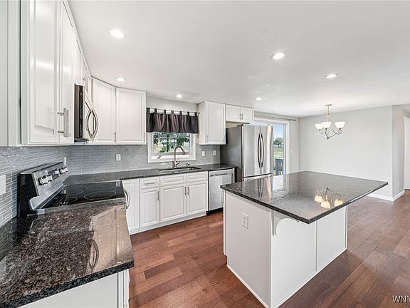 Welcome to this beautifully updated 3-bedroom, 1-bath ranch situated on nearly half an acre in the highly sought-after Starpoint School District. Step inside to an inviting open-concept layout featuring a modern kitchen with granite countertops, stainless steel appliances, and an island with seating—perfect for cooking and gathering. A separate dining area adds extra space for entertaining.Enjoy indoor-outdoor living with a sliding glass door leading to a spacious deck overlooking your private backyard. The updated bathroom, along with three comfortable bedrooms offering great closet space, make this home as practical as it is stylish. With newer furnace, hot water tank and roof (2019) this move-in ready and full of charm ranch has everything you need to feel right at home. Delayed negotiations until Monday, October 6th at 3pm.