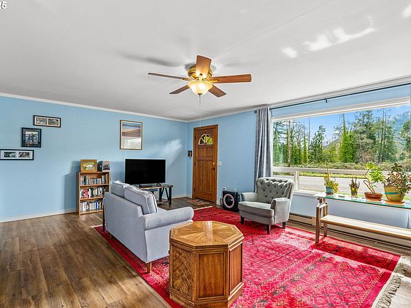 Discover the perfect blend of comfort and convenience in this beautifully maintained 2-bedroom, 1 bath home, nestled on a full half acre in the heart of Oakridge - the mountain biking capital of the Northwest! With great natural light and stunning mountain views, this quiet retreat offers a peaceful country feel while still inside city limits and just moments from the Post Office, espresso cafe, art galleries, and shops. Kids, pets, and your friends will enjoy the large fenced backyard. You’ll find ample room for an RV and boat in the oversized driveway. This home has new interior paint, three new heat pumps, a new certified catalytic wood-burning fireplace, a new water heater, new electrical panel, and double-paned windows. The roof is approximately five years old. You’ll find the kitchen equipped with a built-in range, oven, and new hood/microwave combo, while the living spaces include ceiling fans in the living room and both bedrooms. The home is move-in ready with a washer, dryer, refrigerator, and even a cord of wood in the woodshed. Enjoy easy access to nearby parks and trails and Oakridge’s renowned recreation, including hiking, fishing, and world class mountain biking. Don’t miss your chance to own this charming home!