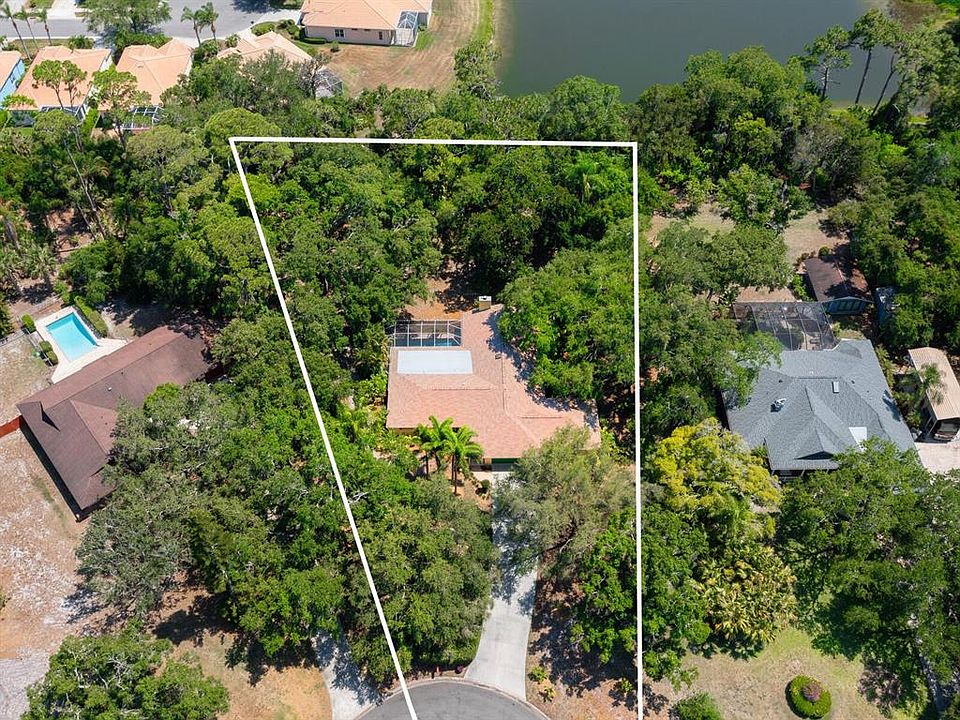 Discover this unique, character filled home surrounded by a tropical oasis situated on almost an acre in central Sarasota A one of a kind 3 bedroom (2 are ensuite), 3 bath pool home with attached workshop is ready for new owners to make it their own. Boasting a newer roof in 2022, a bonus room with cedar ceiling, wood burning fireplace and impact glass double doors opening to the generous sized paver lined lanai and heated pool. The interior of the home offers a separate dining area with built-in cabinets, together with a separate living area, both of which have impact glass double doors leading to the pool and screened in lanai. The kitchen is centrally located, contains a pass through to lanai, cork flooring, Ash wood countertop and gas top stove. The owner’s retreat, with glass sliding doors leading to the back yard, offers a spacious walk-in closet with a special hand crafted wooden barn door, cork flooring and spacious bath with spa tub and separate shower. The 2nd bedroom is ensuite and the perfect guest area, providing walk-in closet and an access door to the pool from the private bath. The third bedroom is conveniently located next to the third bath. The interior laundry room is comprised of washer & dryer, storage cabinets and a separate shower; the two car garage also offers room for storage and an entry door to the attached workshop. The workshop, a woodworkers’ dream with a separate air conditioner, dust ventilation system and electric panel, can be used for a multitude of hobbies or converted to whatever you desire. Situated in Knotty Pines Estates is a non-deed restricted small enclave of 25 homes on a dead-end street with no through traffic and positioned off a main thoroughfare with access to I75. Dunn Drive is around the corner from Urfer Park and in close proximity to world famous Siesta Key beach, downtown Sarasota, shopping, dining, entertainment and a multitude of cultural events in our area. The possibilities for this home are endless and the opportunity is now.
