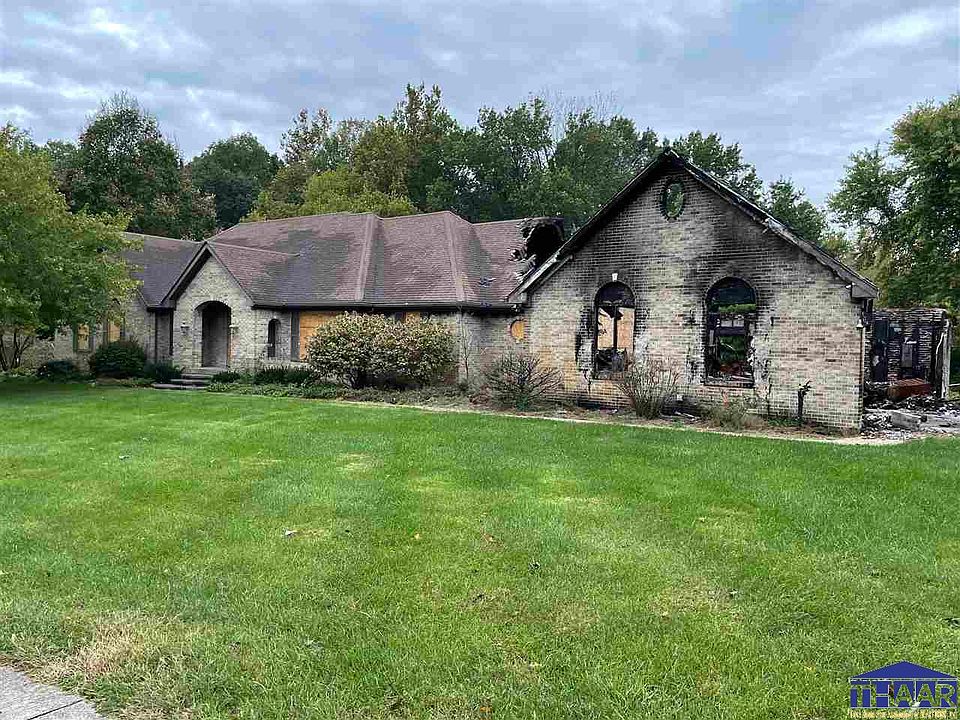 This Home suffered damage due to a fire in garage and water from fire dept. to extinguish the fire. This home needs to be gutted but has potential with 2 parcel lots on over an acre of ground. Many possibilities to rebuild with over 3200 sq ft. plus a basement that was finished but needs completely gutted. Exterior is all brick.
