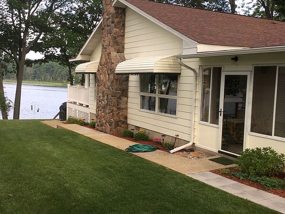 Enjoy the beautiful views and amenities of All Sports Sage Lake from this well constructed and maintained waterfront home! 80 ft of sandy frontage with your own private dock. Located on a paved cul-de-sac street and featuring lots of updates including a stone seawall and 100' well! The 3 bedroom, 2 bath totally remodeled home boasts over 1350 square feet. The house has crown molding, 5 inch baseboard, solid core decorative panels doors, fluted trim molding with rosettes. The kitchen cabinets are custom and the countertops are granite. A large family room, fireplace, a 8x20 enclosed porch, and a 26x24 garage, a 16kw Generac auto generator, lawn irrigation system, Lenox Hvac system, 13x40 Trex deck, and a 22x72 concrete driveway. Looking for more storage? The home also features 2 additional storage sheds!