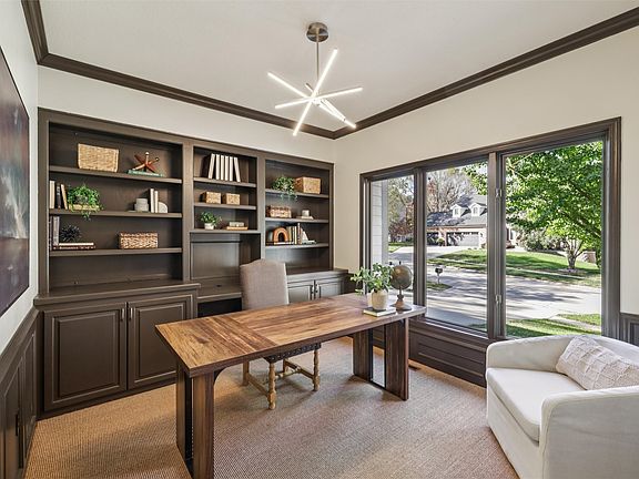 Discover your dream home on a spacious .35-acre lot in Quail Meadows! This gorgeous residence offers style for modern-day living and entertaining. The welcoming 2-story entry features gleaming hardwood floors and a glass door leading to a den with built-ins. The main level boasts a formal dining room and a vaulted living room. The cozy family room with a fireplace, built-ins, and new carpeting creates a warm, inviting space. The bright four-season sunroom offers views of the NEW beautifully landscaped yard, and opens to a grilling deck. The large eat-in kitchen is a dream, with stainless steel appliances including a Sub-Zero refrigerator, a planning desk, pantry, and stunning new quartz countertops. Upstairs, retreat to the primary suite with hardwood floors, a luxurious full bath, and a spacious walk-in closet with NEW custom built-ins. Three additional bedrooms include a private bath and a Jack-and-Jill, offering plenty of space for family and guests. The walk-out finished lower level features a 2nd family room, recreation area, bedroom or workout space, a ¾ bath, and ample storage. Amenities and/or recent upgrades: central vac, refinished hardwood flooring '25, NEW carpet on main and upper levels '25, fresh paint on exterior and through most of the interior '25, many new light fixutres '25, a new water softener '25, roof '22, HVAC system in '22, a new driveway in '21, and a 3-car garage. This home is an exceptional oasis for creating lasting memories.