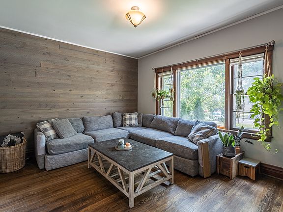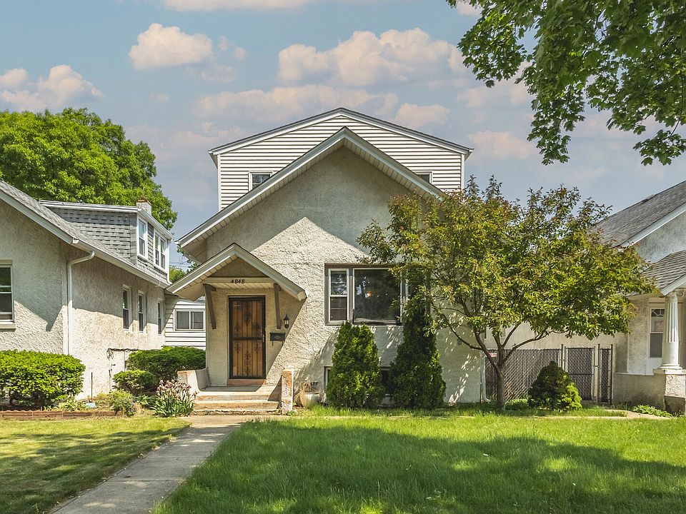 This lovely 3 bedroom/ 1 bath home is located in the beautiful neighborhood of Portage Park. From the moment you walk in through the front door, you will find gorgeous hardwood floors that lead you to a foyer with custom built-in bookshelves. The gleaming hardwood floors extend throughout the living room, dining room and bedroom on the main level. The living room has a gorgeous shiplap wall, stunning millwork and lots of natural sunlight. The separate dining room is spacious. Perfect for entertaining. There is a nice size bedroom off the dining room with tall ceilings. The galley kitchen has been updated and has lots of charm, as well as a walk-in pantry and a large eating area. Off the kitchen is a mud room with a door that leads to the side and back yard. The bathroom on the main level has been tastefully remodeled and has a walk-in shower. On the second level you will find two bedrooms of generous size and large closets. Down the hall is an unfinished attic which has rough-in plumbing to add a second bathroom. Spacious open basement is just waiting to be finished! Home has a newer roof and central heat and air. Backyard comes complete with a brick paver patio and a 2 car garage. Home is in walking distance to Portage Park elementary, Six-Corners, Starbucks any many restaurants and entertainment. Easy access to the I90/94. A must see!!!!
