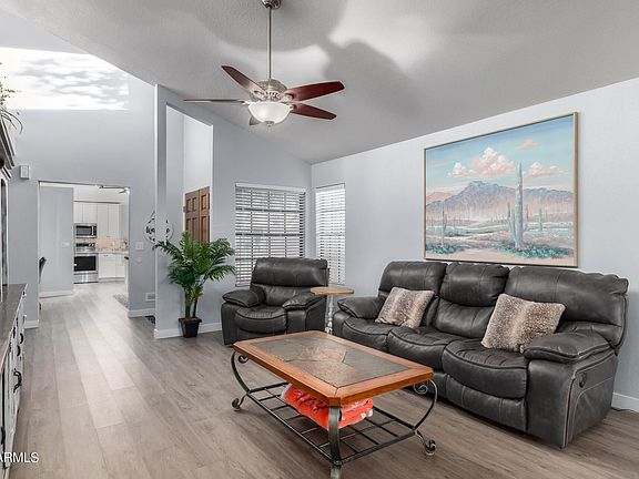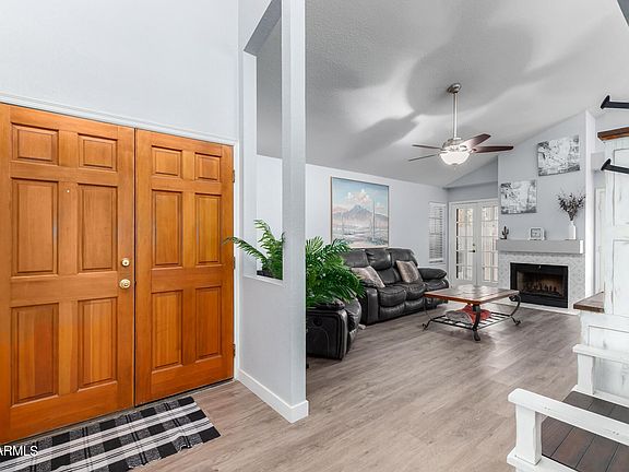 Stunning, move-in ready home! Don't miss your opportunity to own this beautiful 2 bedroom, 2 bath house in a great Chandler location. Beautifully updated in 2020 with luxury vinyl plank throughout, this home has a large kitchen with beautiful, new white cabinets, quartz counters, stunning backsplash and stainless-steel appliances. The spacious living room has plenty of natural light, a cozy fireplace, and French doors to the beautiful back yard. The main master suite has a completely updated bathroom with an oversized shower and double sinks, a walk-in closet and access to the back yard. Master suite #2 also has an updated bathroom and access to the back yard.
