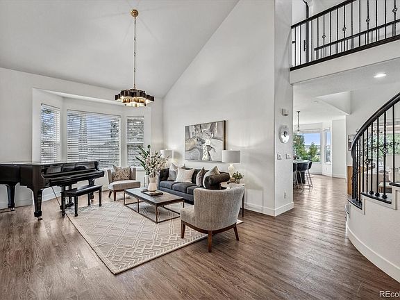 Awesome open space views behind your back yard while located on a quiet cul-de-sac***Updated throughout with almost everything already done for you***Mint, move-in condition exhibiting Pride of Ownership!!!Rare 6 bedrooms, 5 bathrooms, study, 3 car garage, finished walkout basement, home theatre, .32 acre lot*** Notice the main floor master lives like a ranch! The main floor features vaulted living room or dining room, kitchen, 2 story family room with gas fireplace, master bedroom with 2-sided gas fireplace going to the 5 piece bathroom, walk-in closet with custom closet organizer, powder bathroom, large laundry/mud room with cabinets, sink, custom built-in storage area. The gourmet kitchen features quartz counters, stainless appliances, gas cooktop, and pendant lights. Experience sunny mornings and shaded evenings on the new trex deck with a covered roof. The beautiful curved staircase with iron balusters leads to the upstairs vaulted bonus room with built-in desks, bedroom #2 with an ensuite full bathroom, upstairs laundry with stacked washer and dryer, bedroom #3 and bedroom #4 with a Jack and Jill bathroom. The finished basement features a theatre space, great room, wet bar, large bonus room, bedroom #5, spa-like bathroom and storage. Numerous updates throughout including the backyard retreat! You will enjoy the hot tub (included), evening lighting, mature landscaping, large concrete patio, gas fire pit, and fence. This home is equipped with solar panels (owned) to enjoy low electricity bills, water softener, 75 gallon water heater, security system, and newer paint. Backs to prime open space - McMurdo Gulch and Cherry Creek Trail. Colorado living at its finest! Close to Pradera Golf Club so drive your personal cart to enjoy the facilities.