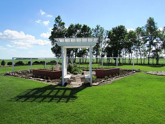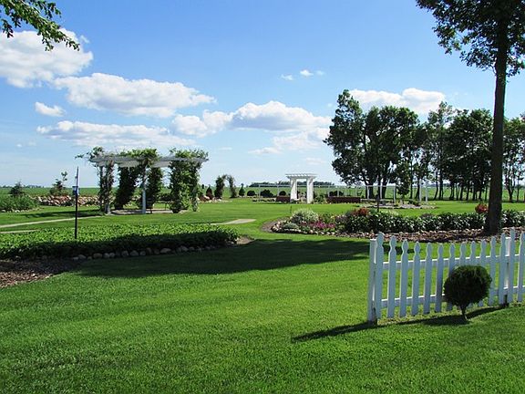 Located on a blacktop road, this immaculate acreage features a completely remodeled home, finished shop, mini orchard, flower gardens, raised vegetable gardens, underground sprinkler system, and much more! This well kept acreage consists of a contemporary remodeled 2,580 sf finished home with 5 bedrooms and 2.5 bathrooms. Remodeled within the last six years, the main floor offers an efficient kitchen and dining area with custom cabinets, patio door to the front patio, and a gas fire place connecting the living and dining area. With all new windows throughout, there is an abundance of natural light with 3 bay windows on the main floor. There are 3 bedrooms and 1 and 3/4 bathrooms (both with heated floors) on the main floor including the master suite. The master bedroom is inclusive of wardrobe closets, custom built-in storage cabinets, cedar closet, master bathroom with a heated floor and a walk-in tile shower, along with patio doors as an entry to the back deck and gardens. Dura Ceramic tile floors and hardwood are throughout the house except for carpet in the master bedroom. The lower level is finished with a cedar sauna, two bedrooms, laundry room, family room, and an abundance of custom storage cabinets and closets. The house has been updated with all new plumbing, furnace, central air, and a water heater. The attached 636sf garage is insulated and heated with a poly finished floor. The exterior of the house has been updated with steel siding and a steel roof.