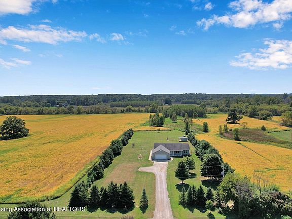Welcome to 4849 Elliott Road in Mason! This is a pristine, 3 bedroom, 2.5 bathroom, ranch on 2 beautiful acres! upon entry into the foyer, you will find hardwood flooring that leads to carpet and tall vaulted ceilings throughout the main living area. The living room features a gas fireplace, and just around the corner is more of the amazing hardwood in the dining room! The dining room is full of natural light thanks to the sliding glass doors that lead to the large deck and yard. The open kitchen has plenty of counter space, a pantry, tile floor, custom cabinets, and a great glass tile back splash as well as seating at the peninsula! Also with the tile flooring is the mudroom and laundry room as well as the conveniently located half bathroom. On the other end of the home you will find the three carpeted bedrooms and two full bathrooms with tile floors. The primary bedroom is a full suite with a walk-in closet and en suite bathroom! On the lower level is a full basement with egress windows, 9 foot ceilings, and it is stubbed for an additional bathroom. It easy to see this is a beautiful property! There is also a 12' x 12' barn with two stalls and a small pasture area already set up. Surrounded by agricultural land this gives you a great country feel with plenty of space and still easy access to main roads. This is not a property you will want to miss out on!