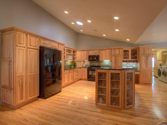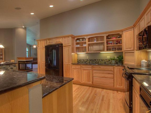 Your peaceful haven inside city limits. Privacy Galore! 10 beautiful, wooded acres 5-minutes from the medical corridor and Rapid City shopping and dining. Wonderful open layout with 4 bedrooms (3 on the main level), 4 baths and two master suites- one featuring a separate shower and jetted tub. Bask in the sunshine and dine under the stars on your sprawling outdoor patio. This space offers spa-like tranquility with unique features including a landscaped waterfall. The grand kitchen with granite countertops, hardwood floors and 3-sided gas fireplace will quickly become the heart of your home. Guests will feel they have a space all their own with a walk out basement and kitchenette- mothers in law welcome! Home also offers favorite home-buyer amenities: Main floor laundry, exercise room, large welcoming front porch, extended driveway for RV parking, gun/safe room.