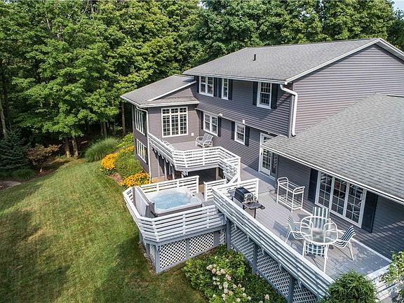 You will be truly amazed by the all of the features and perfect condition of this home. Tucked in the end of a cul de sac the private yard, deck and meticulous grounds will impress any family seeking some tranquility. One owner home has everything you need or want. Large eat in kitchen is bright and overlooks the back yard. Open floor plan with a large family room with a marble hearth gas fireplace. Second floor master bedroom & bath plus 3 more bedrooms and full bath. The impressive 15 x 25' library is the perfect home office to isolate. Hard maple flooring completes the executive touch. Finished walkout basement has an additional office work area, bedroom, bonus room and two exterior doors. Wall of windows for daylighting and view of the grounds. The extensively landscaped grounds feature a hand laid stone brook, bridge to the other side, gazebo, playhouse and kidney shaped pond with fountain. View of the grounds from the 3 level deck will blow you away. A permanent 7KW nat gas backup generator for peace of mind. Hot water heat w 95% efficient boiler and central air & ductless splits. A true jewel that is sure to impress.