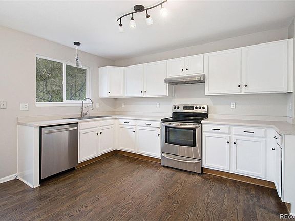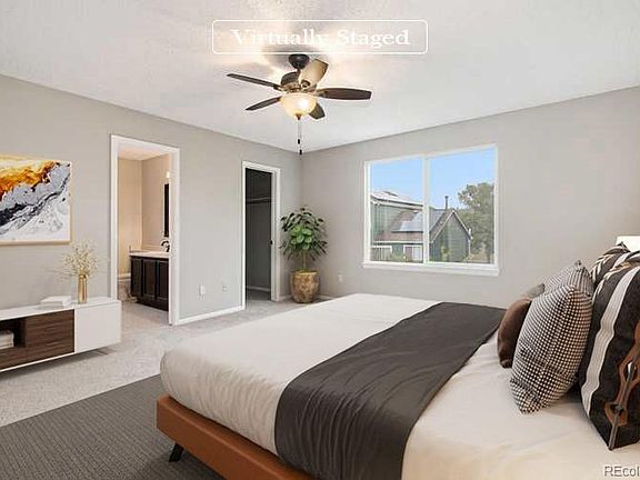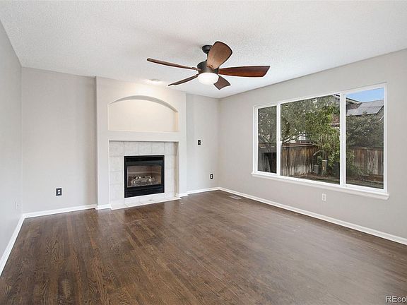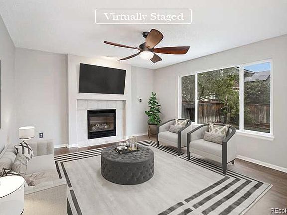 Fabulous 3 bedroom, 3.5 bathroom home in Highlands Ranch. The open-concept kitchen features stainless steel appliances, beautiful white cabinetry, and dark hardwood floors that flow into the living room, where you'll find a cozy fireplace and an abundance of natural light. The primary bedroom boasts plush carpet and an en-suite bathroom. Outside, enjoy a fenced-in yard and patio perfect for entertaining. Don't wait to make this home yours! This home has been virtually staged to illustrate its potential.