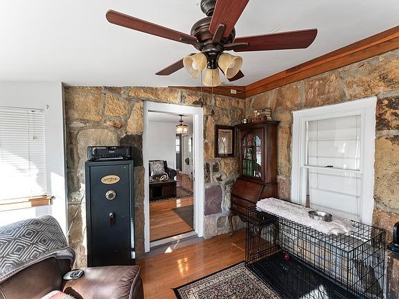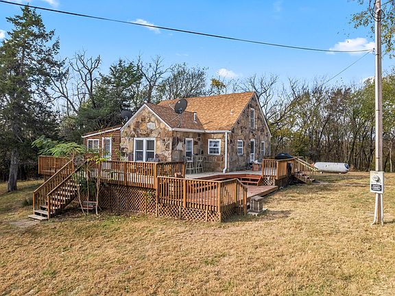 4849 S 15th Rd, Aldrich--CHARMING is the best way to describe this adorable rock house on 2.04 acres on Stockton Lake. Surrounded by government land, this is a private oasis with loads of potential! By the road it's only 1/8 mile to Stockton lake! You can see the lake through the trees at various points and various times of the year. There is a path to walk down to the water, but you are on Corp land at that point as Stockton is a Corp lake. Many newer items here including the roof, HVAC, etc. Also, you will enjoy the outbuilding, shed and milking barn for any and all mini-farm projects you want to under take. This is truly a unique property and would be a great first or second home!