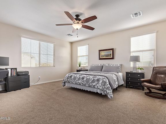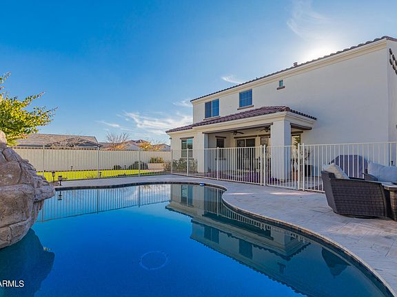 This is the best value in all of Eastmark! Seller wants to move right now so we reduced the price to near give away status! Even at this steal of a deal you still get all the award winning amenities of Eastmark, farmers market, lake and more. This 4 bed 3 bath home with a resort style backyard w/large turf area and sparkling pool w/built in rock feature slide can't be beat. You really need to see this one to appreciate it, even the professional photos don't do the layout justice. Downstairs you'll find 1 bedroom and full bath, a sitting room, open kitchen/great room and dining area. Upstairs is a large loft, the owners retreat with a well sized bathroom and walk in closet with direct access to the laundry room and 2 additional bedrooms with access to a cute porch overlooking the park.