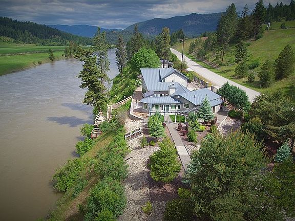 PROPERTY PRICE JUST REDUCED!! This amazing property, located just 68 minutes from Missoula, is unparalleled in all of the amenities it offers and the potential for you to realize your dream of living in Montana. Sitting on 500' of Clark Fork River frontage, with multi-level decking and just steps away from world-class hunting grounds. If you love to fish, float, hike or hunt this is the place for you! Built on 1.19 beautifully landscaped acres, this sprawling ranch is fenced on 3 sides and offers an exterior of Hardi-plank siding with stone accents, Thermaguard fiberglass exterior doors and standing rib metal roof. In addition to the 2 1/2 car fully finished attached garage, you may park all your big "toys" in the 36' x 58' 4-bay RV barn with roll up doors or have a place to enjoy doing any project in the heated 24' x 36' shop with drive thru doors. This property is also fully set up for hunters with a game hoist and walk-in cooler. Among even more amenities too numerous to mention here, the interior offers top level finishes throughout, including designer lighting and paint, stone and hardwood flooring and granite slab counters throughout the house. The large open kitchen with breakfast bar and large dining area enjoys all-stainless Kitchenaid appliances including glass stove top, built-in microwave and wall oven, warming drawer, wine cooler and a Miele steam oven. As you walk in the home, the large foyer is a conversation area with one of the 3 indoor fireplaces. On the main floor you find a spare bedroom, bath, laundry room with utility and spa sinks, the cozy living room with floor-to-ceiling ledgestone fireplace and also boasts a 2 bedroom guest apartment with kitchenette, sitting area and large sun room. The upstairs open loft is the perfect spot for lounging and TV watching and connects to the wonderful private master suite with propane fireplace, sitting area, coffee corner and additional washer/dryer combo unit. The double-desk size office completes the picture with electronics for 8-zone security monitoring system and 7-zone surround sound system. Outside, you will find a beautiful patio with BBQ area, fireplace and Sunsetter motorized awning, large dog kennel with indoor area, emergency propane back-up generator and a fire pump generator system that pulls water from the river to all the buildings. Contact us to see this truly unique property!