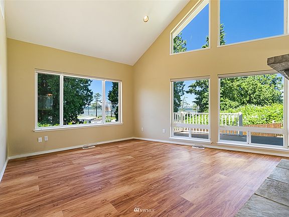 Center of the Bay living! This Birch Bay home in the gated Sea Links community features views of the bay from a private, quiet, back of the cul-de-sac lot. This inviting home has living room, kitchen, dining, one full bath with access to one of two bedrooms, double sided fireplace, deck access, utility room, and two car garage. Upstairs is all primary suite with jetted tub, shower, sitting area with fireplace, and deck access. Downstairs is the partially finished storage area with kitchenette, half bath, and recent use as family/game/ TV room. Watch the sunset from your own deck or walk to the beach and beyond to one of several restaurants, shops, and parks. Easy access to Blaine and I-5. You’ll feel like every day is a vacation!