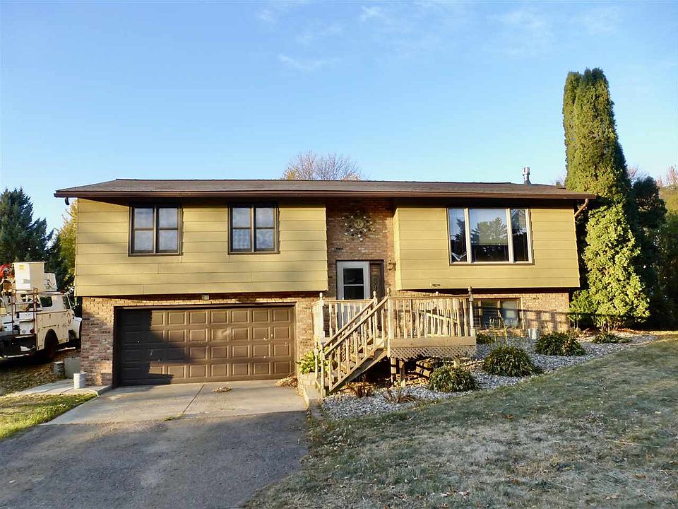 Perfect country location in BV School District. This 4 bedroom home is only minutes from Brandon located in Red Rock Estates. The kitchen features recessed lighting, tile floors, newer cabinets & countertops, and the breakfast bar has underneath storage. Main level has the highly sought after 3 bedrooms on one level, the living room is accented by a brick fireplace, an open dining area with access to a 2 tier deck. Lower level has spacious family room with hookup for free standing stove, 4th bedroom and 3/4 bath with laundry. There is an oversized attached garage, a detached 24x24 garage, plus an additional garden shed for storage. Trees and shrubs line the property providing privacy and wind barrier. Yard play set stays. Rural water and a private well for your gardening. $200 a year road maintenance. Secluded in the trees is a relaxing spot to read or enjoy nature. Radon mitigation is already installed.