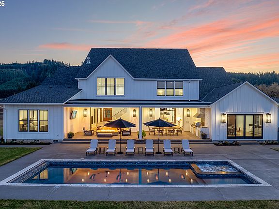Come home to the pinnacle of luxury and tranquility in this modern farmhouse masterpiece just over 50 private acres between Forest Grove and Banks. Custom designed and built in 2022 by Pavilion Construction, the home offers breathtaking 360-degree views of Mt. Hood, Mt. St. Helens lava dome, and the rolling Willamette Valley. An entertainer’s dream, it boasts seamless indoor-outdoor living with a resort-style pool, expansive covered patio, and a state-of-the-art home theater. Beautifully designed withcareful attention to detail, deluxe features and casually elegant finishes. For wine enthusiasts, 22 acres of prime vineyard-ready soil present an incredible opportunity to plant vines. Just minutes from Banks, with easy commutes against the main flow oftraffic to Intel and Nike. This one-of-a-kind retreat blends refined craftsmanship with every modern convenience—your private sanctuary with effortless access to the city.